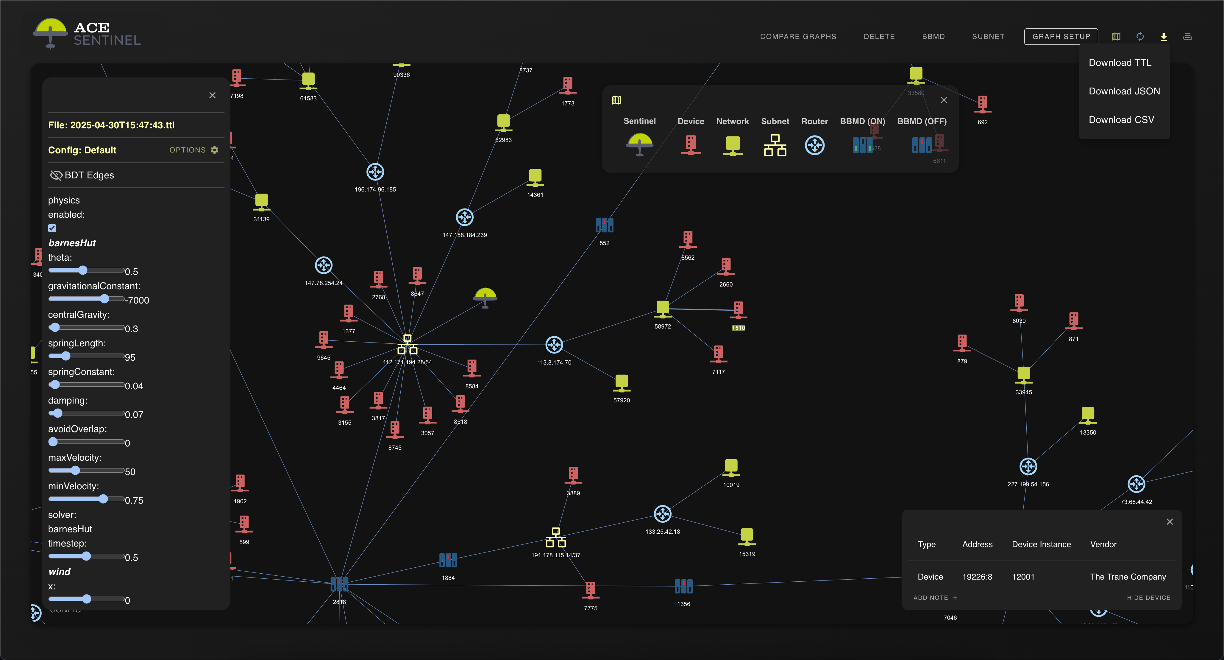 Visualize and document a building or campus's BACnet communication networks, providing real-time insights into network health and performance.